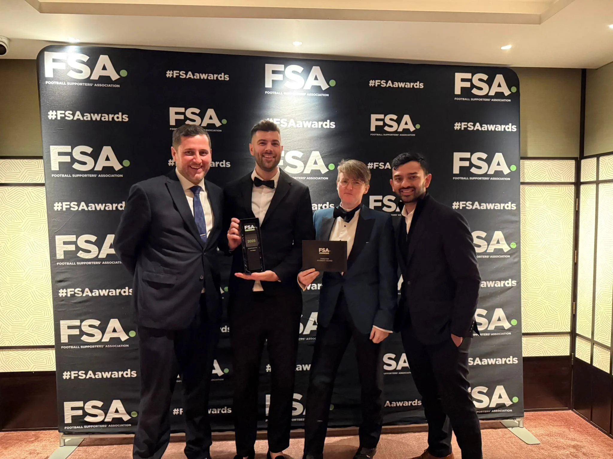 Founder Piero Zizzi, alongside vice-chair Sarah Kerton and former general secretary Neil Basterfield, attended the FSA awards at Nobu London in Old Park Lane on Monday where Proud Baggies were revealed as this year’s winners of the prestigious award - presented to them by BBC journalist and presenter Victoria Derbyshire.