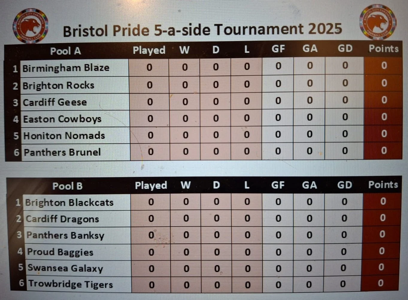 The event was 5-a-side, with six teams either side of the group stage. Due to our geographical proximity, PBFC and Birmingham Blaze were kept in separate pools in the group stage - as were the two Panthers teams and the two Cardiff teams.