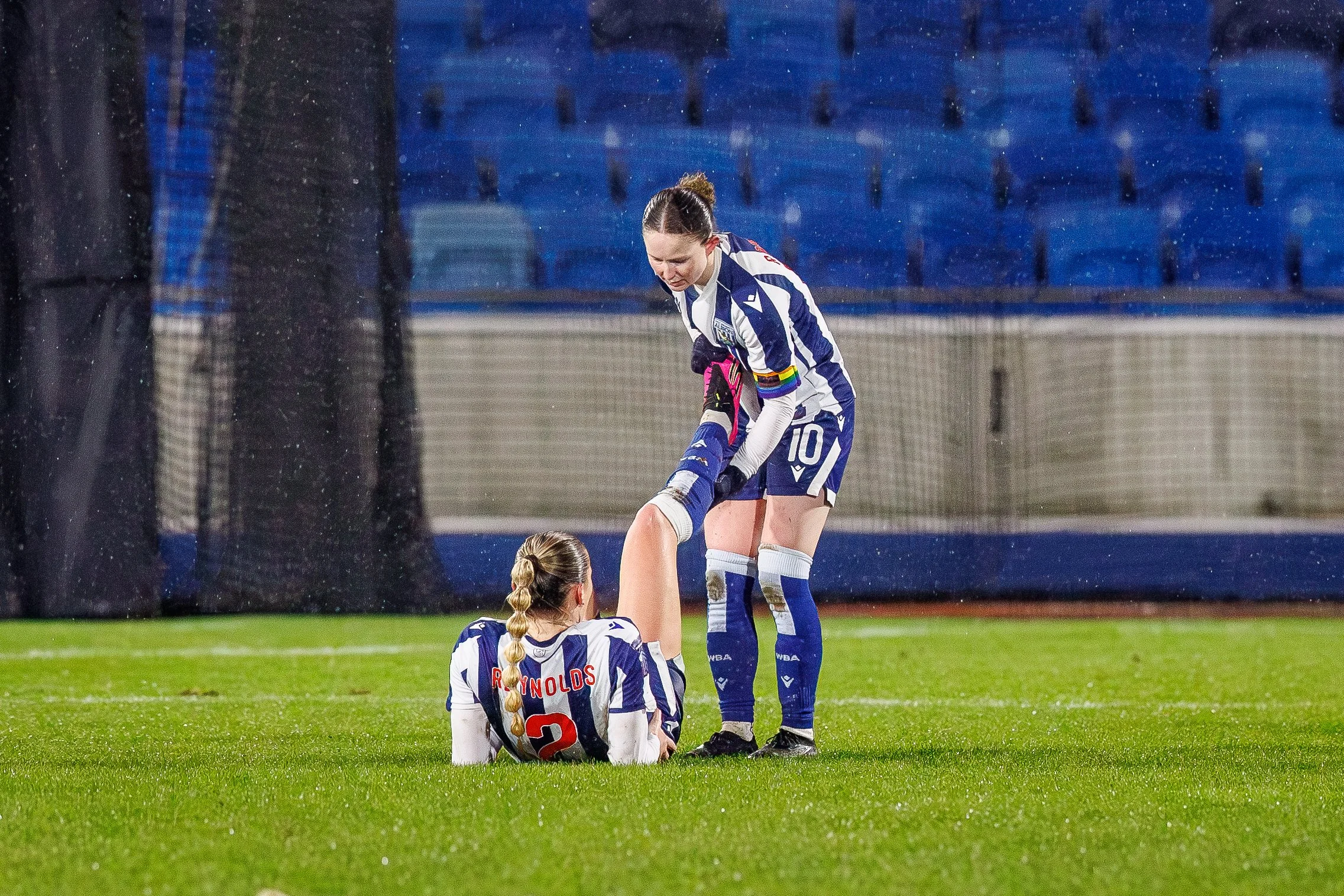Liv helping defender Taylor Reynolds with cramp late in the game.